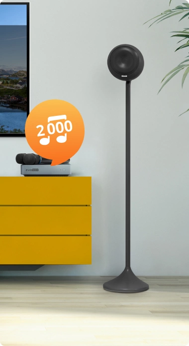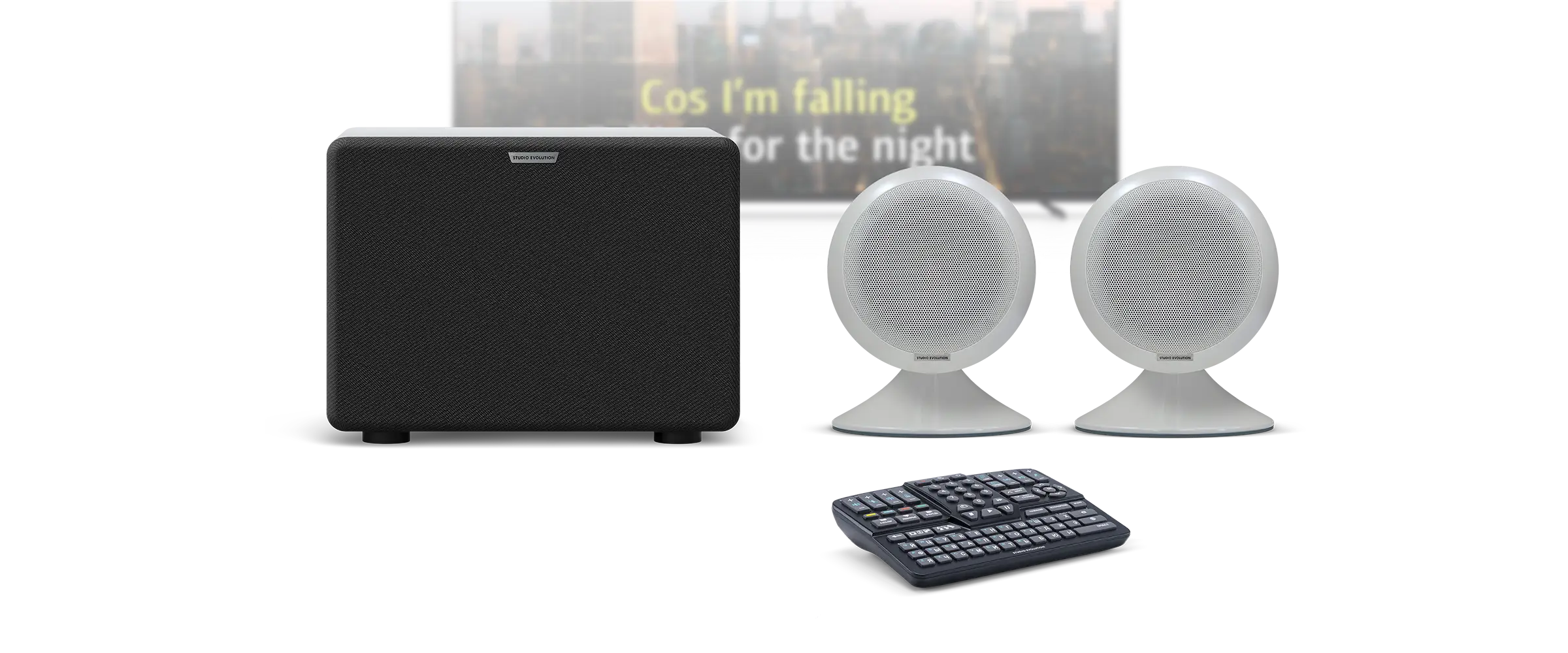 Complete karaoke set for home karaoke by Studio Evolution. Includes professional karaoke system, two digital wireless microphones and speaker system for karaoke EvoSound Sphere.